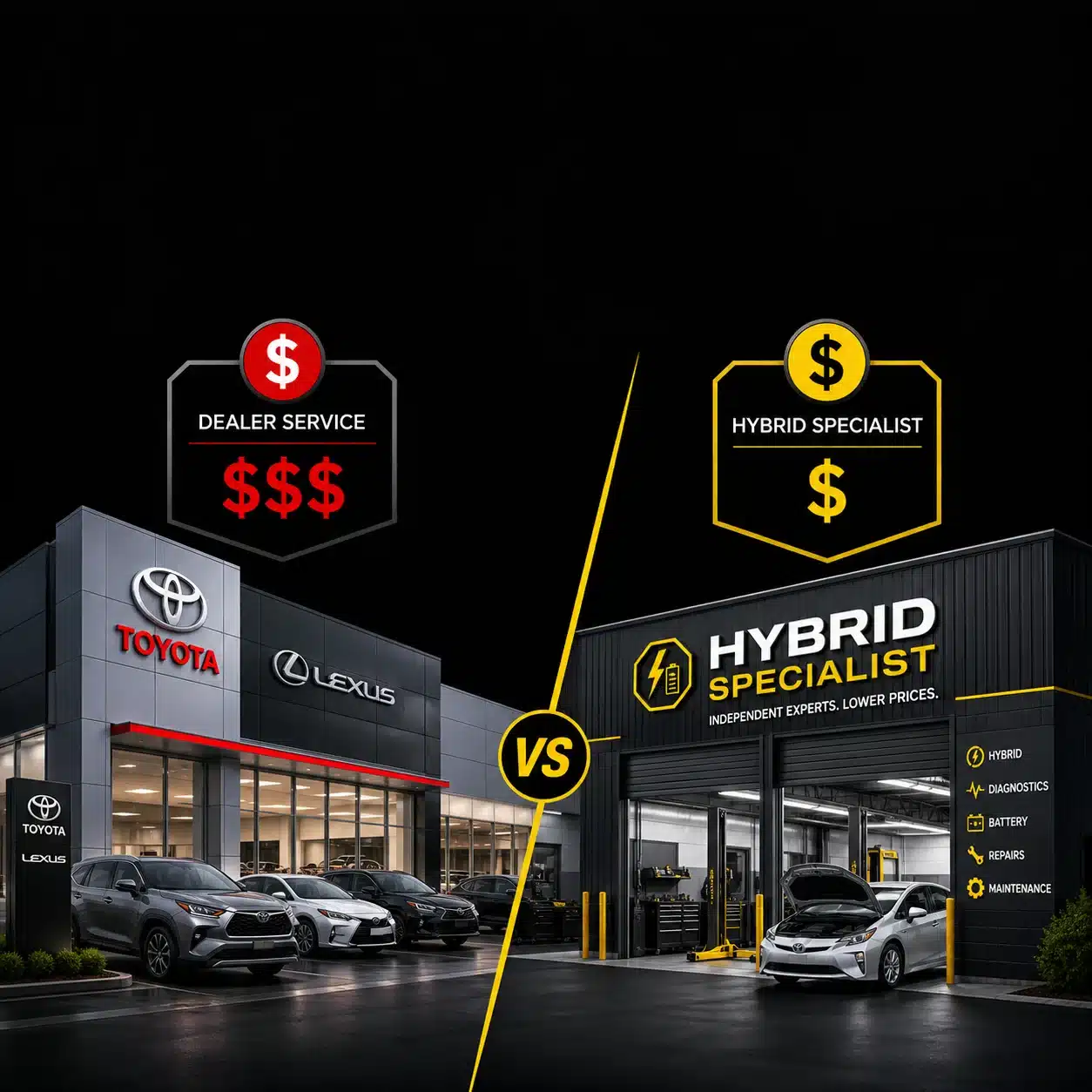 When your hybrid battery needs replacing, one of the biggest decisions you’ll face is where to get it done. Should you go to the Toyota or Lexus dealership, or choose an independent hybrid specialist? The price difference can be significant, but cost isn’t the only factor to consider.